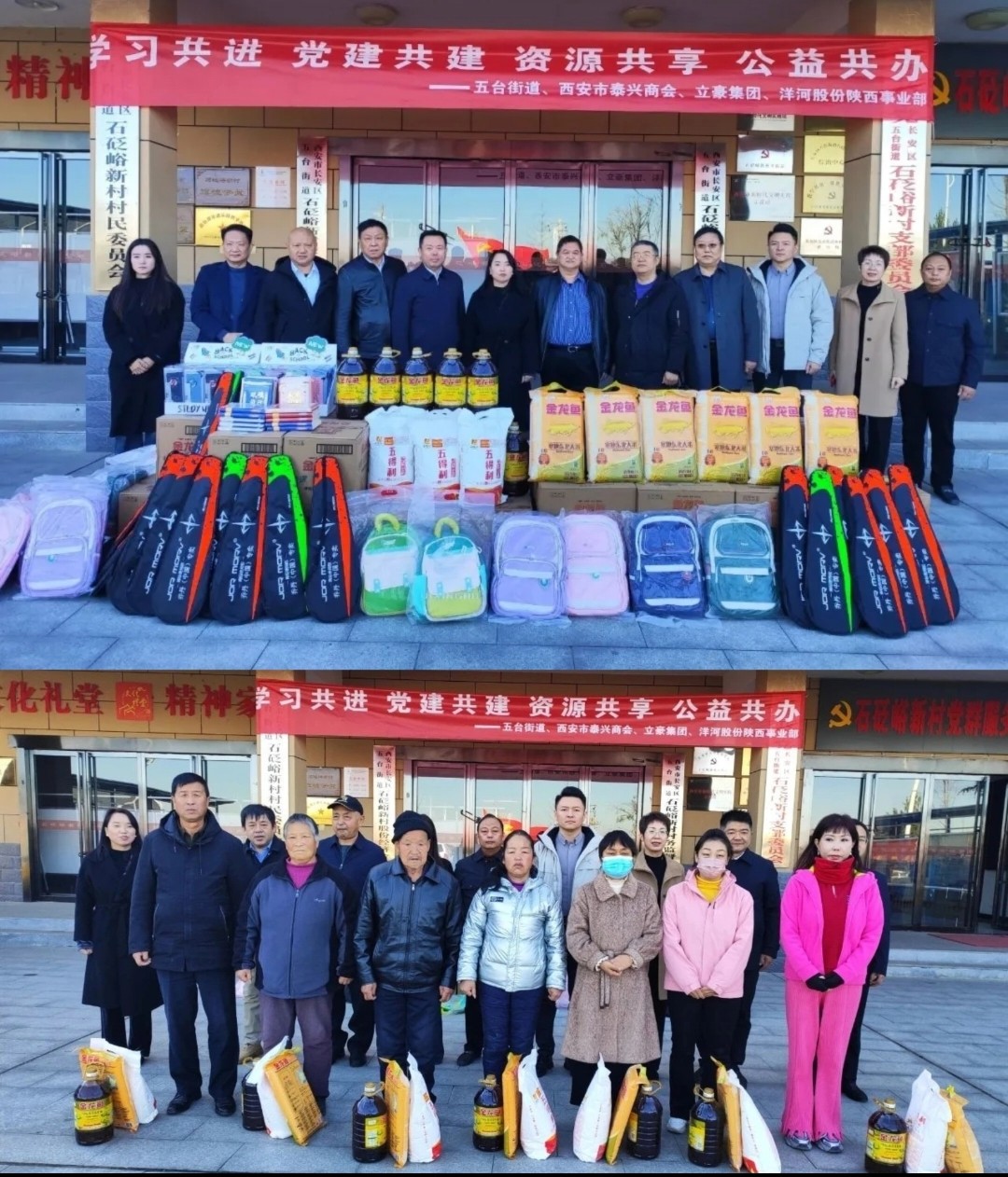 11月29日,為實(shí)現(xiàn)黨組織優(yōu)勢(shì)互補(bǔ)、資源共享的黨建新格局,立豪集團(tuán)聯(lián)合五臺(tái)街道、西安市泰興商會(huì)、洋河股份陜西事業(yè)部開(kāi)展“學(xué)習(xí)共進(jìn)、黨建共建、資源共享、公益共辦”主題活動(dòng),為五臺(tái)街道困難老黨員、困難群眾、退役軍人、留守兒童送溫暖獻(xiàn)愛(ài)心。五臺(tái)街道黨工委副書(shū)記韓盈、立豪集團(tuán)董事長(zhǎng)、西安市泰興商會(huì)會(huì)長(zhǎng)桂志明、西安市泰興商會(huì)企業(yè)代表、五臺(tái)街道各村支書(shū)、群眾代表共50余人參加活動(dòng)。