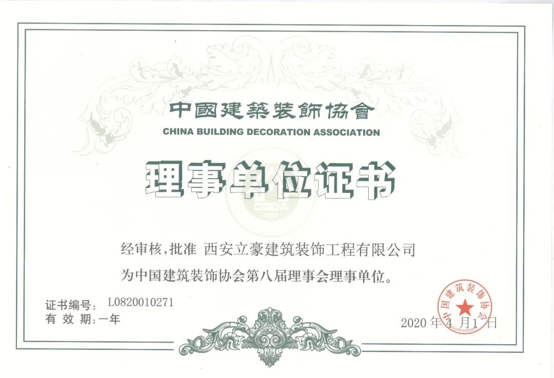 立豪集團榮升中國建筑裝飾協(xié)會理事單位